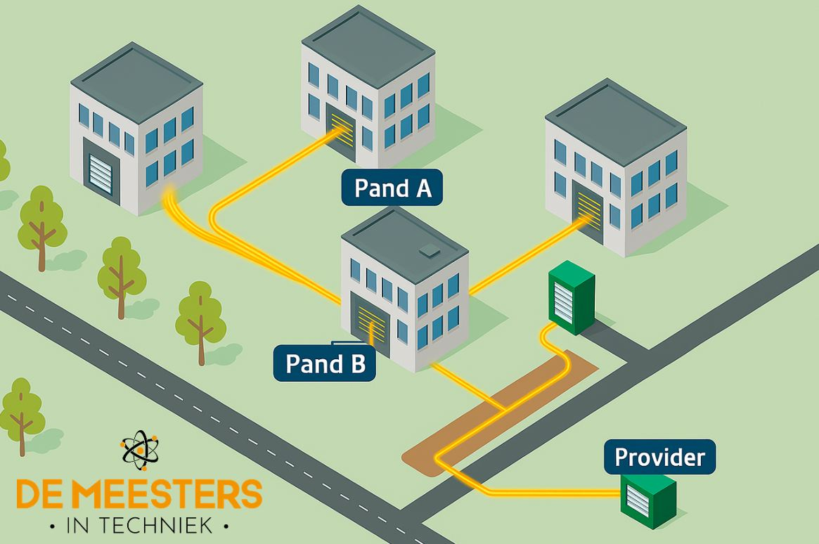 Onze monteurs leggen glasvezelverbindingen aan in onder meer bedrijfspanden, machinefabrieken en kantooromgevingen. Een veelgezochte oplossing is glasvezel tussen twee panden.